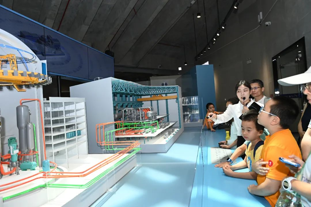 截至目前,大亞灣核電基地通過“硬核 Walk”預(yù)約小程序預(yù)約參觀的人數(shù)達(dá)到600人。在大亞灣核電基地,游客們不僅能切身感受到中廣核始于大亞灣核電站的發(fā)展歷程,還能學(xué)習(xí)核能領(lǐng)域的科普知識。在觀景平臺上,游客們將大亞灣核電站、嶺澳核電站一期、二期的雄偉景象盡收眼底。由于8月正值暑假,基地主要以親子科普活動為主,家長帶著孩子們探索神秘的核能領(lǐng)域,既能增長知識又增進(jìn)了親子關(guān)系。
