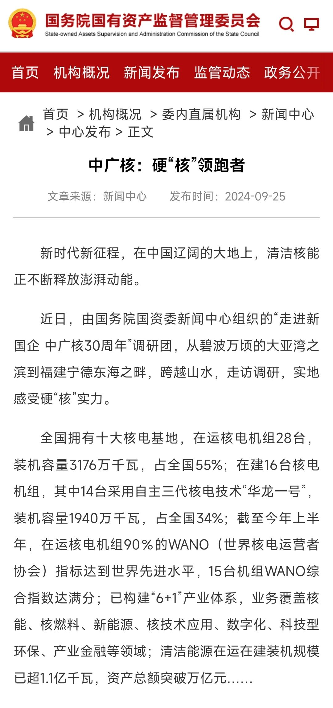 國務(wù)院國資委官網(wǎng)以《硬“核”領(lǐng)跑者》為題