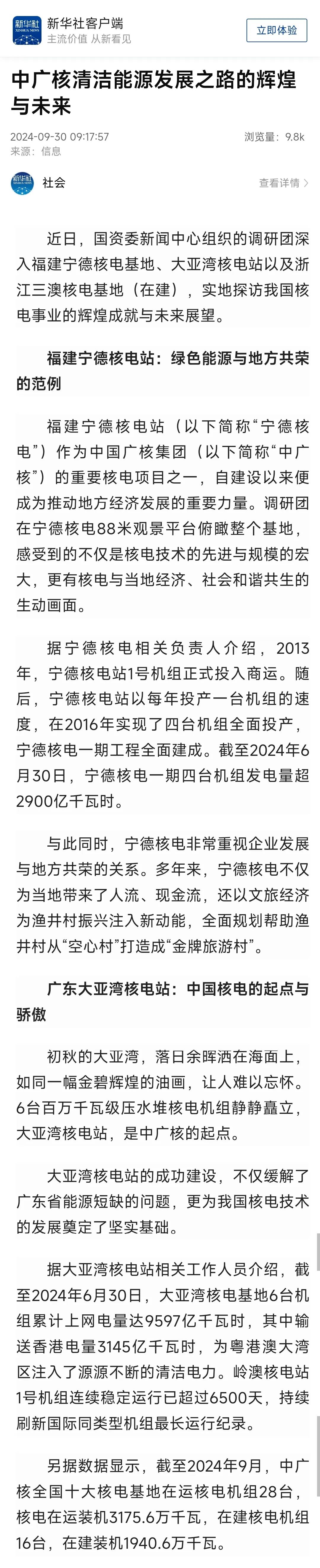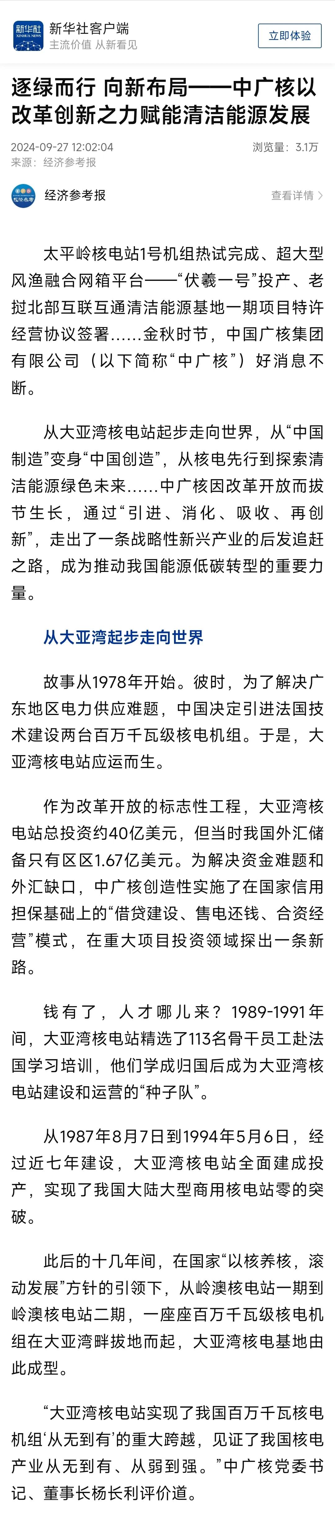 以《中國廣核集團(tuán):砥礪奮進(jìn)譜華章 追“新”逐“綠”創(chuàng)未來》為題